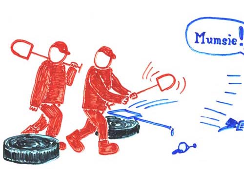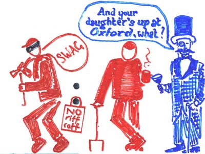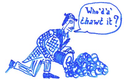 While you're reading this, your browser, unless it's too clever by half, has started loading the images for the first few slides. In fact, it should be loading the images for the whole talk. That's what the dots at the bottom lead to. If you're on a fast line, don't bother waiting. Otherwise, it might be a good idea to have a cup of tea, or whatever takes 2Mb-odd time, and let your cache fill up with my silly cartoons.