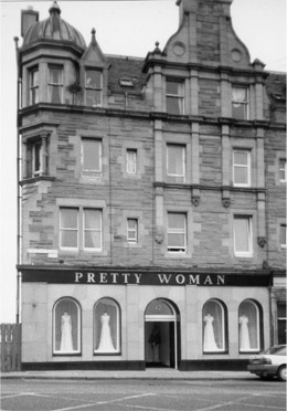 The picture shows the `Pretty Woman' bridal boutique, which, owing to public outcry, has had to move to these new expanded premises from its old place just down the road. It takes considerable effort and ingenuity to make a bridal boutique look like a funeral parlour, but these people have pulled it off with style. I am told Julia Roberts is a regular customer.