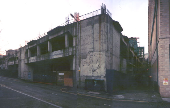 This unfinished multi-storey car park is where the Amalgamated Fiendish Villains' and Bluff Coves' Union meets once a week to practice laughing. It's dead handy for the Playhouse.