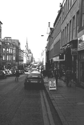 appropriate. Can you?Into the building formerly known as AISB. You can see the Cowgate from here, but you can't get there unless you're pigeon shit, or you go down Infirmary Street. South to Nicolson Street.